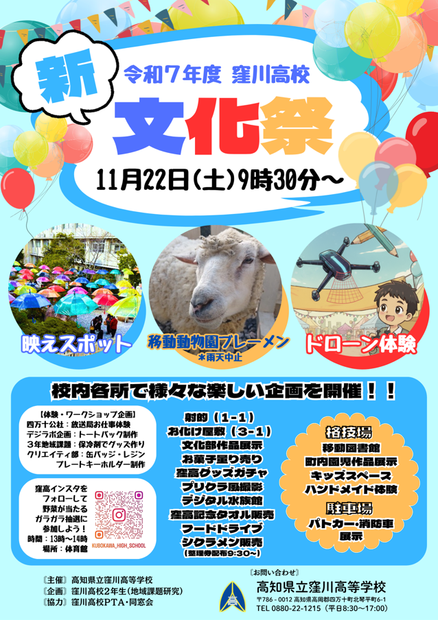 ※昨年度まで「窪川高校新文化祭official」で発信しておりましたが、今年からアカウントを**「窪川高校公式(高知県)」**にお引越ししました。