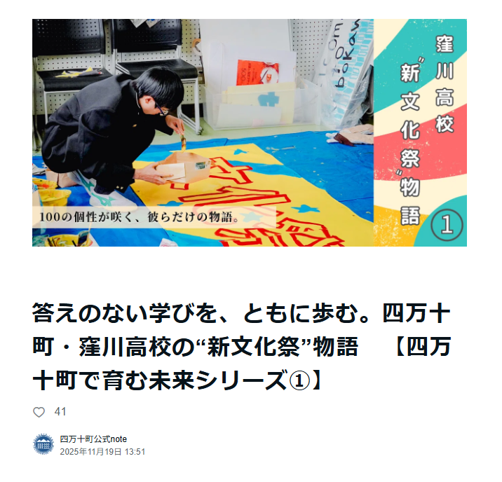 窪川高校の生徒たちが全力で挑んだ「新文化祭」。 その舞台裏を描く「新文化祭物語」が四万十町の公式noteで公開されています!